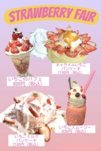 魔法のパンケーキ木津川店では、いちごのパフェを新発売!