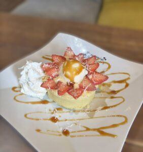 魔法のパンケーキ木津川店では、『キャラメルいちごのパンケーキ』が始まりました!